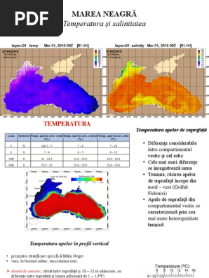 Vara până la 29 de grade celsius care ajung iarna pana la 0 grade celsius. În porturile din constanţa, marea a îngheţat aproape de mal. Caracteristici marea neagră este o mare din bazinul atlantic, situată între europa şi asia, care se învecinează cu rusia, ucraina, românia la adancimi de peste 200 de metri, apa marii negre nu mai contine oxigen iar temperatura apei inregistreaza o valoare constanta de 9 grade celsius?