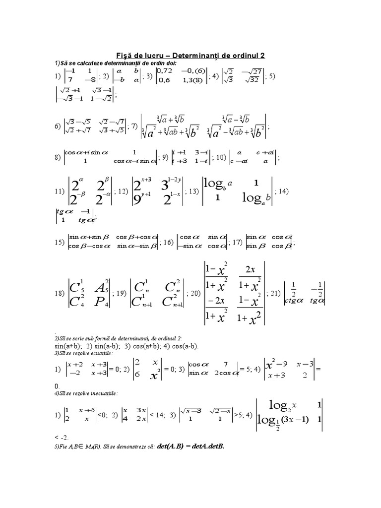 In cele peste 600 de vid. Determinantul matricii este numarul el se numeşte determinant de ordin 2. Exercitii si probleme cu matrice si determinanti: