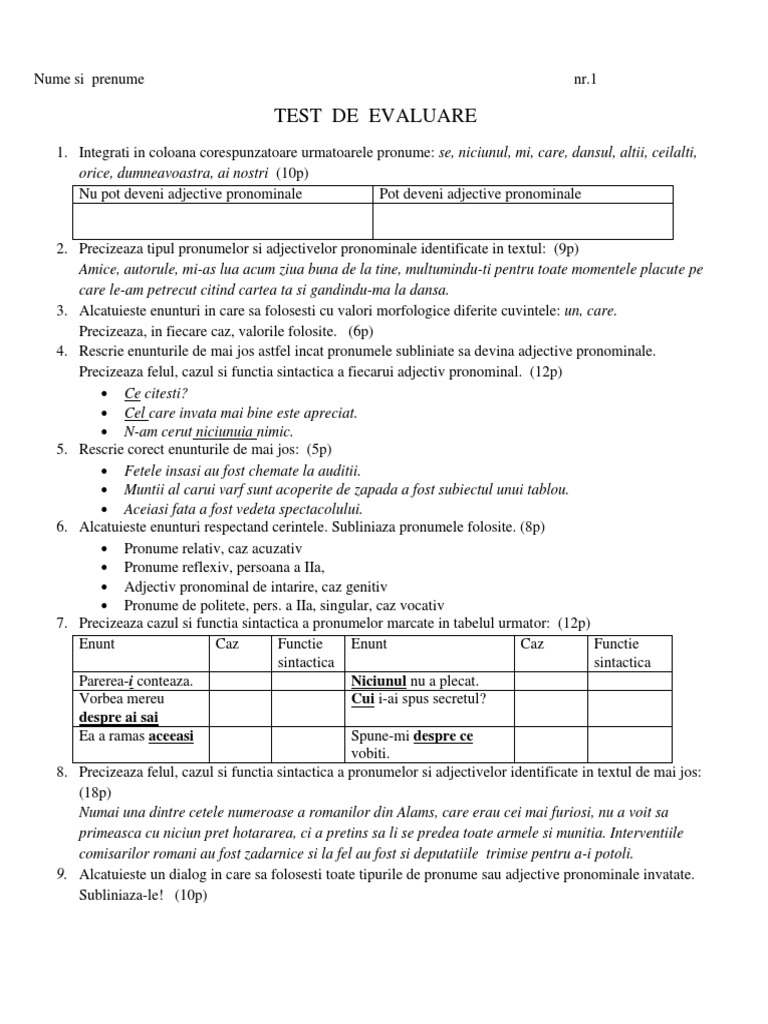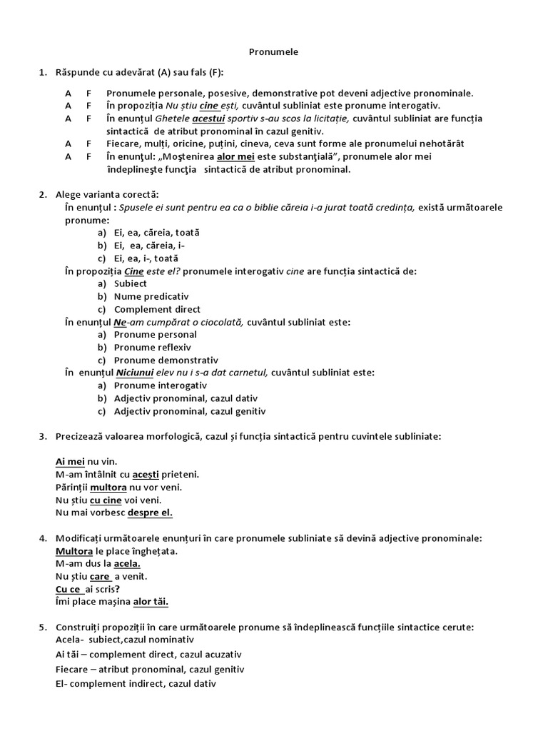 Referat despre utilizarea corecta a pronumelui relativ care pronumele relativ se deosebeşte însă de conjuncţie prin faptul că el îndeplineşte în propoziţia pe care o introduce o anumită funcţie sintactică, pe când conjuncţia este doar un element introductiv al propoziţiei subordonate. Precizeaza functia sintactica si cazul pronumelor cei,acest, celor. Relativă, în cazul în care acesta.