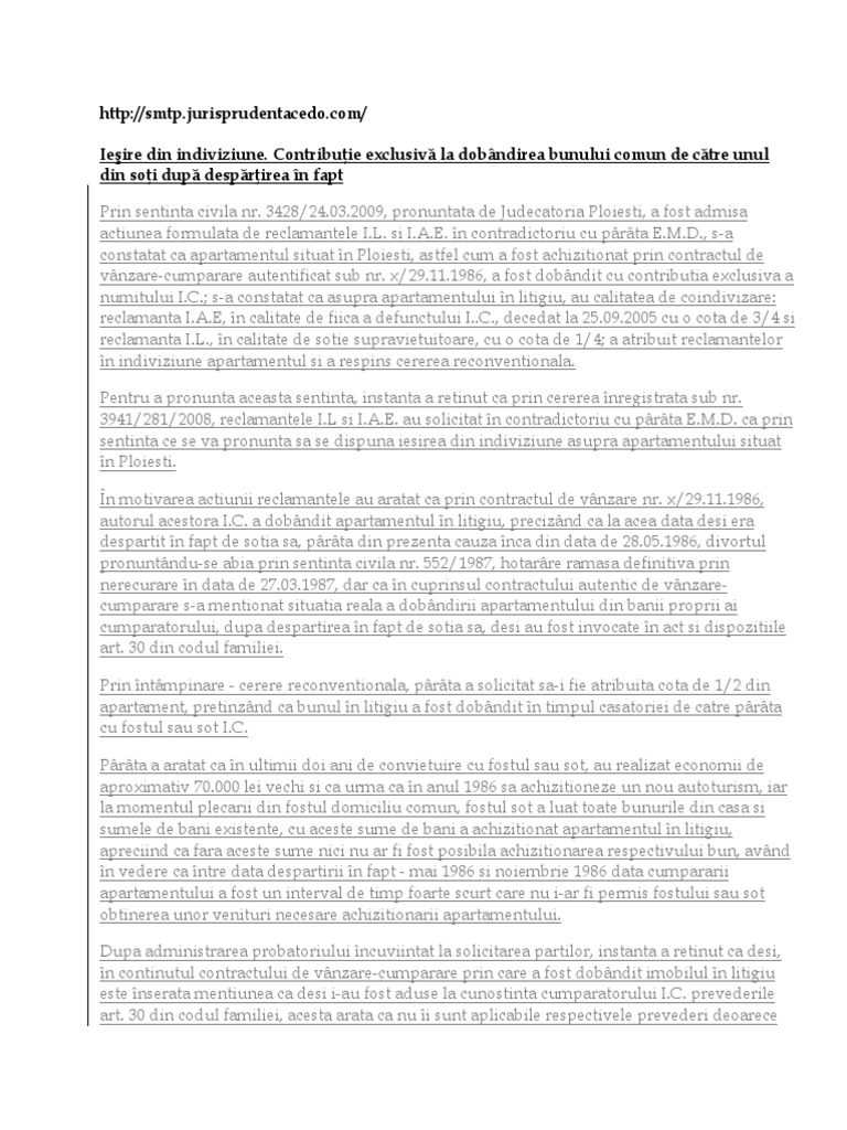 Documente necesare la iesirea din tara. Dispune iesirea din indiviziune conform invoielii, partilor concretizata prin: 3428/24.03.2009, pronuntata de judecatoria ploiesti, a fost admisa actiunea formulata de reclamantele i.l.